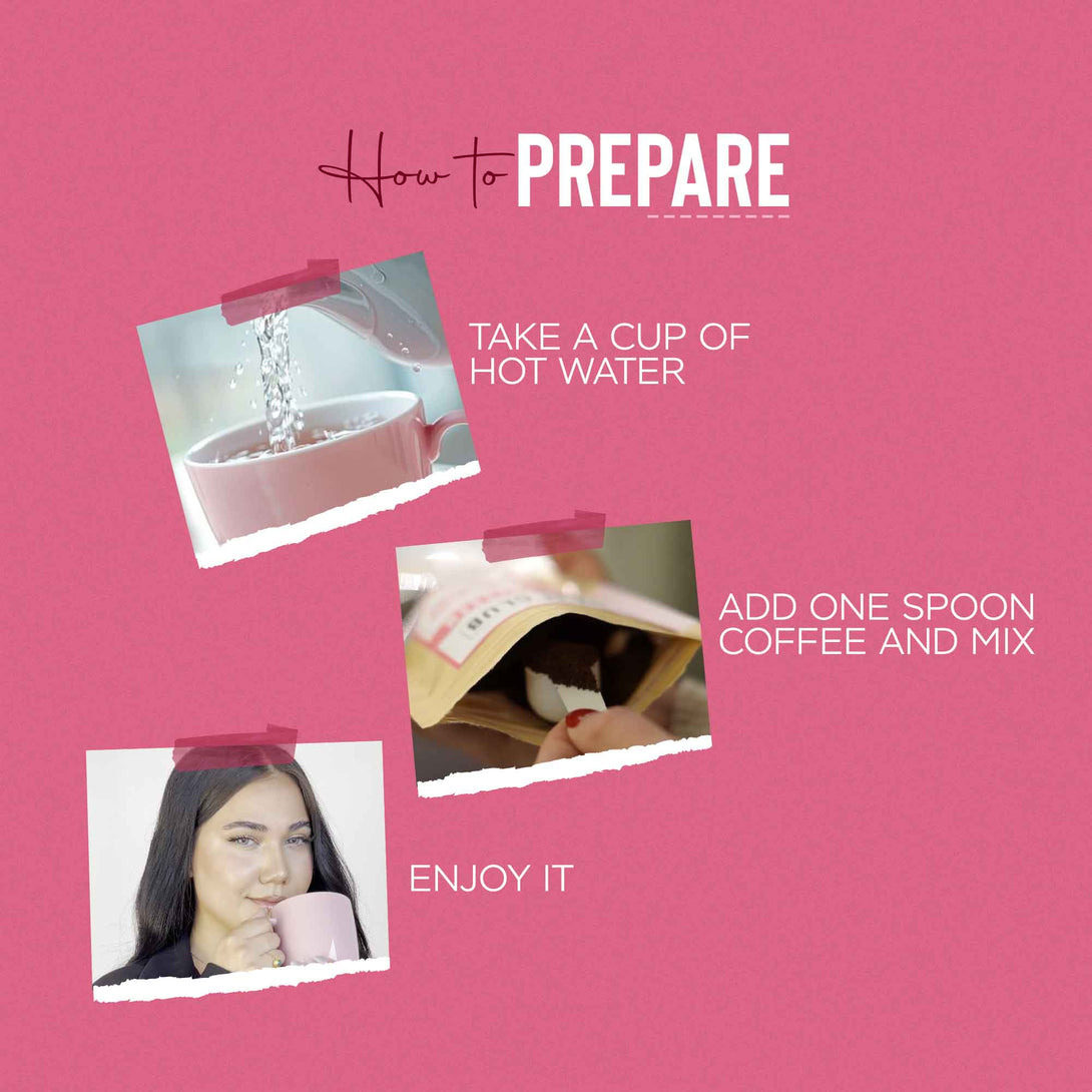 Add 1 mug (150ml) of hot boiling water and 1 level teaspoon (2g) of coffee.